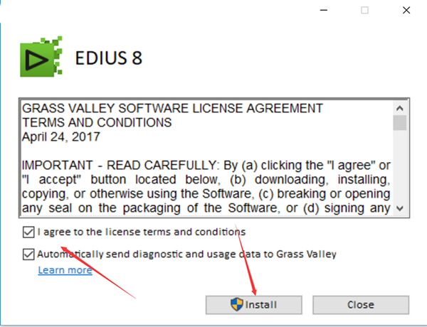 2.双击安装EDIUS_8.53_2808_DL_Setup.exe,选择接受协议,点install安装