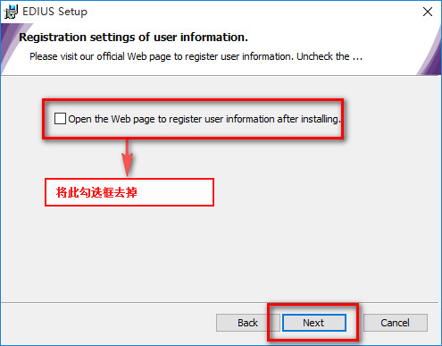 破解注册教程 如何获得序列号1、打开软件的时候系统会弹出以下的提示界面,请大家单击“Edius ID Web”申请试用。