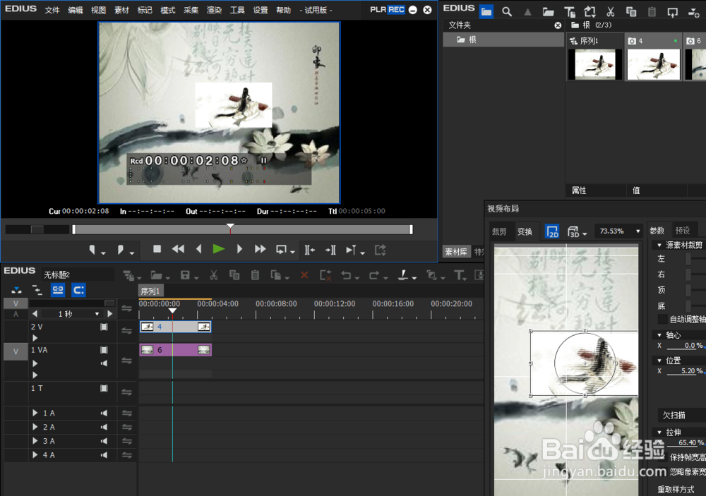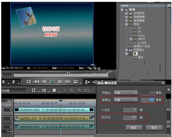 Edius8破解版制作简单的动画教程首先导入素材到素材库,然后双击信息窗口里的视频布局进入视频编辑页面,如下图所示: