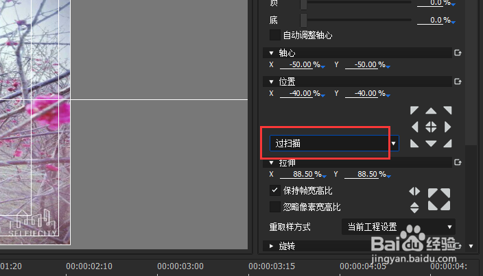 在上图位置属性处还有一个下拉框,这里是有三个选项分别是欠扫描、过扫描和字幕安全。当该视频是在电脑中播放的时候我们选择前扫描就可以,当在电视上播的时候我们就要点击过扫描,如果是带有字幕的,我们就要选择字幕安全。具体如图所示: