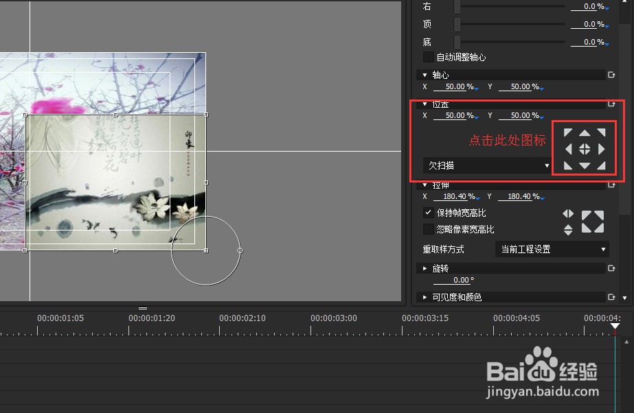 除了我们把鼠标放到需要移动图片上把图片移到我们想要放的位置上以外我们还可以在参数菜单下的位置属性处移动了。如果有精确的要求的话,我们可以通过甚至x、y轴的百分比来实现,大多数情况是通过菜单中的位置图标实现的,具体操作如图所示: