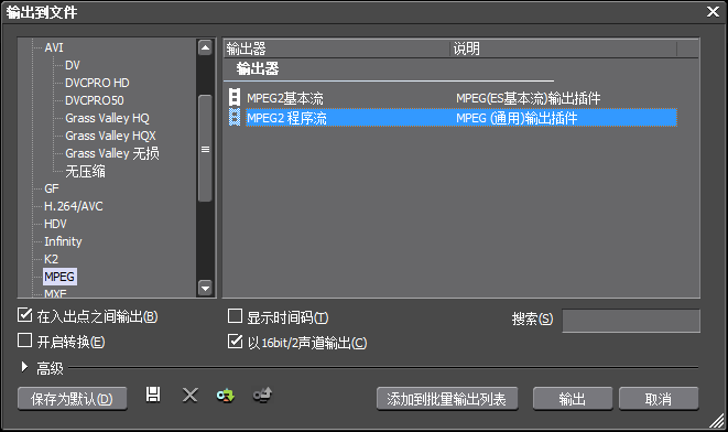 通常情况下,我们用的比较多的输出格式是MPEG,而对于EDIUS输出时视频和音频分别出的问题,应该是选错为MPEG基本流格式了,导致分别输出了一个视频文件和一个音频文件,视频文件没有声音,音频文件没有画面。