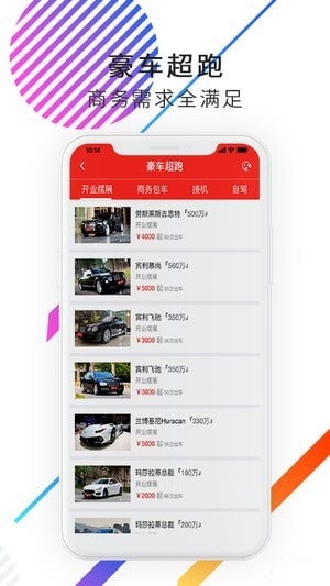 5、自营豪车超跑,一婚一车app为商业用车提供用车服务;