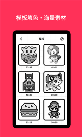 【像素画手绘画板】交互体验流畅,轻松在手机端绘制像素画。【海量模板,每日更新】提供海量黑白模板,填色创作趣味无限。