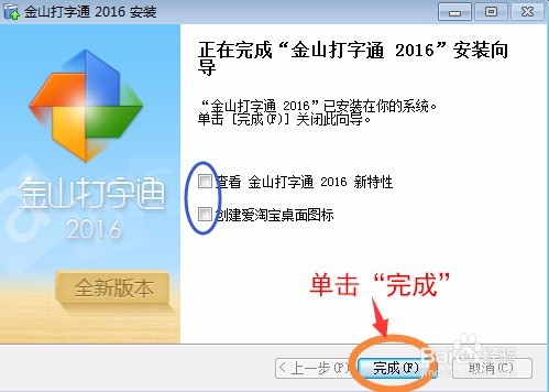 6、出现两个打勾的界面,一样取消打勾后,单击“完成”。此时已安装完毕。