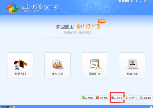 1、下载安装好金山打字通2016之后,打开软件,在页面右下角选择打字游戏。