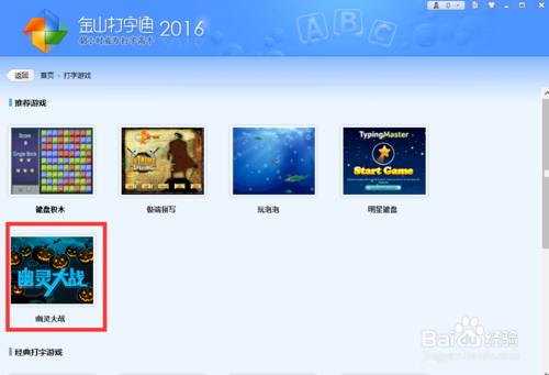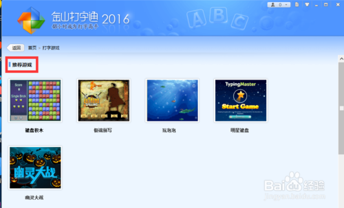 怎样使用金山打字通玩游戏?1、下载安装好金山打字通2016之后,打开软件,在页面右下角选择打字游戏。