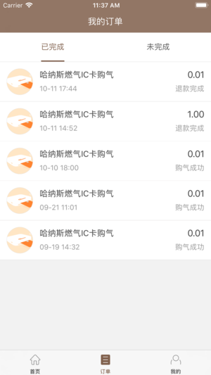3. 雁过留痕。每笔订单记录,无需翻阅纸质账单,就能查阅所有往期燃气使用记录。
