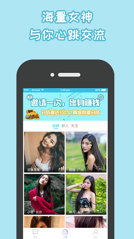 【一见钟情】智能匹配,快速约会,只需1秒,在线美女帅哥秒到你碗里!【人气广场】发语音、码文字、丢表情,还有魔法霸屏,一呼百应,万众瞩目,下一个明星就是你!