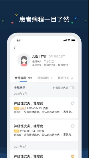 医渡云app是一款协助医生在手机端进行病历查询、病历浏览、病历收藏、患者管理的手机端应用,医渡云app专为医生打造的一款辅助工具,医渡云app中自带海量病历,可以快速的搜索,帮助医生轻松的管理患者信息,还有病程信息一目了然,很好用的医生看病助手。