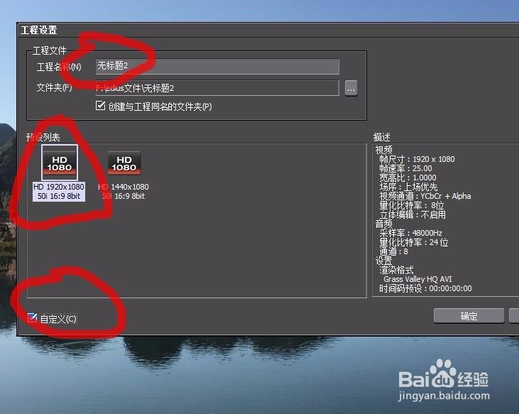 在工程自定义界面,将刚才看到的视频信息和音频信息选中,匹配上刚才的素材。