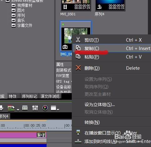 找到新的素材,点击右键,选择复制,将素材复制在粘贴板上。