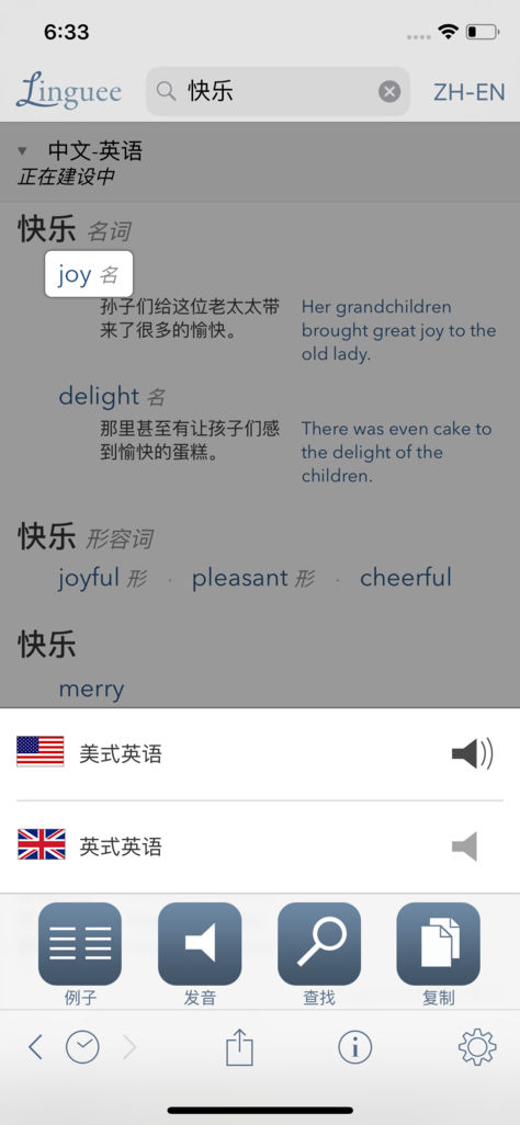 快速搜索:输入几个字母之后就可以看到单词和短语的翻译。由于快速的输入产生的拼写错误也会被智能地纠正。