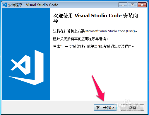 点击下载好的VSCode安装文件进入到VSCode的安装向导界面,如下图直接默认点击下一步,如下图: