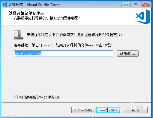 然后下图是创建开始菜单文件夹,这里默认然后继续点击下一步,如下图: