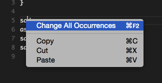 Multi-Cursor:可以连续选择多处,然后一起修改,Alt+Click添加cursor或者Ctrl+Alt+Down 或 Ctrl+Alt+Up