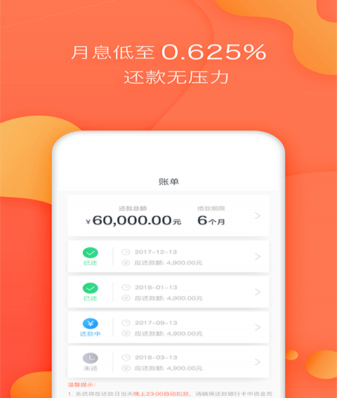 5. 还款易:1-6期还款任选,分期还款无压力。