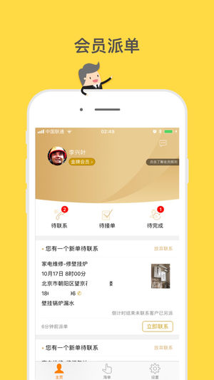 派单后您及时联系客户,在与客户协商费用成功后,为客户提供相应的服务。