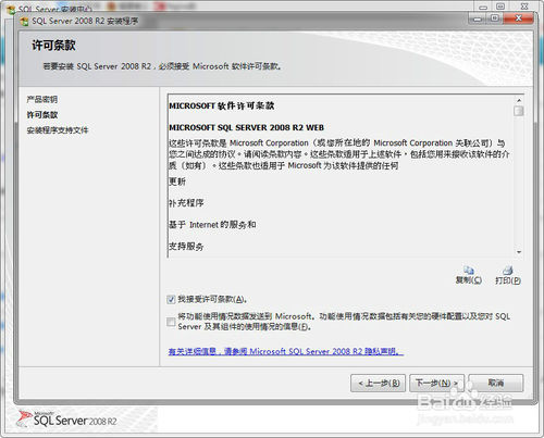 7、勾选:我接受许可条款,并点击下一步