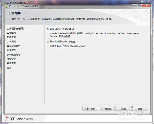 10、选中默认:sql server 功能安装,并点击下一步