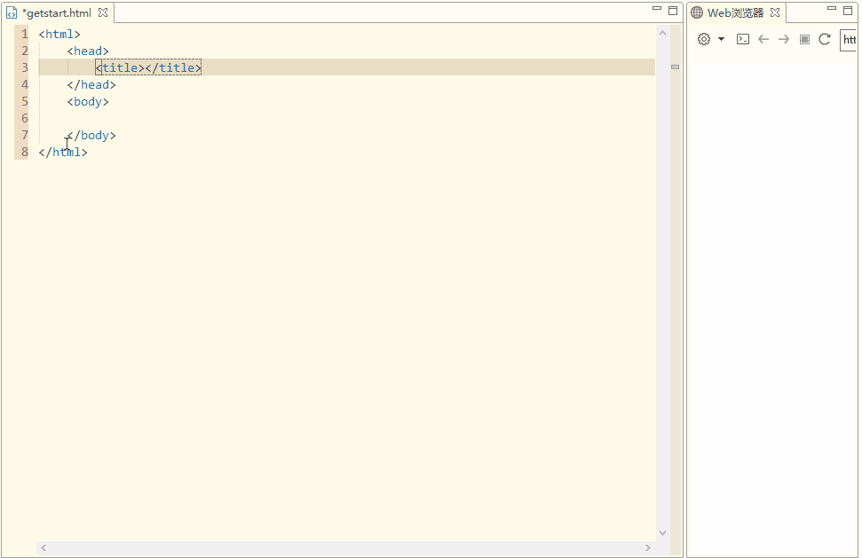 然后按下8,自动生成HTML的基本代码如下图
