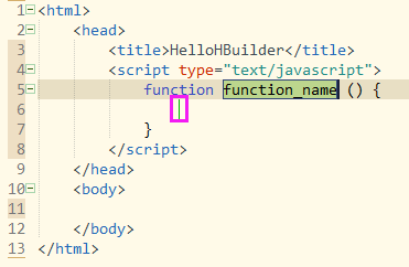 新建html基本模板后,当前光标处于title标签内,此时我们给HTML设置title:hellohbuilder,完成后使用Ctrl+回车在当前的下一行插入空行,并将光标移动到下一行