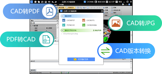 CAD版本转换软件支持多种格式转换,包括CAD转PDF,CAD转JPG,PDF转CAD,CAD版本转换。