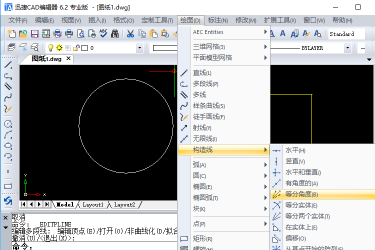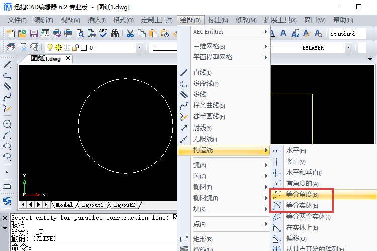 等分角度或是等分实体可以帮助我们一键等分实体,操作方法:执行【绘图】–【构造线】–【等分角度】/【等分实体】,接着小伙伴们就可以等分角度,或是等分实体。