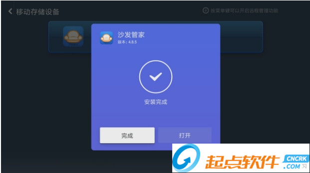 ①下载沙发管家安装文件到U盘 → ②设置允许“安装未知来源的应用”→ ③通过高清播放器找到安装包 →④完成安装