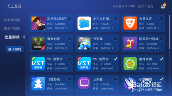 应用卸载没用的和长时间不用的应用,可以直接用卸载,没必要留着占用系统空间和资源。也可以用沙发的批量卸载功能。