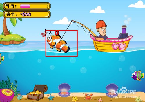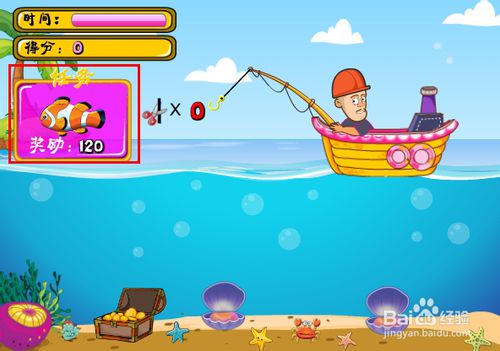 4、钓到目标鱼,分数自动增加,钓错,则会提醒并且减分,并再次展示目标任务。