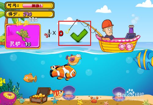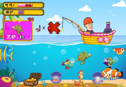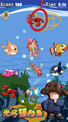 3、水下会有各种鱼游过,根据目标任务,必须要找到目标鱼才放下钩子钓上来才可以得分的哦,否则就要减分。