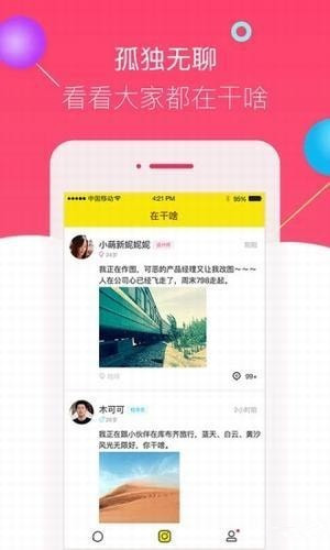 1. 在干啥APP,发布此时此刻你正在做的事情2. 点击别人给你的评论或留言,直接跟Ta聊天