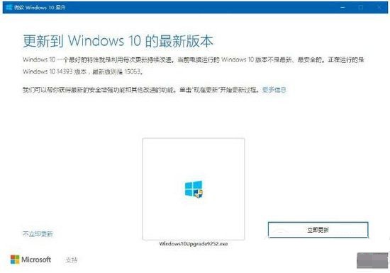 2、双击Windows10易升打开 (即“Windows10Upgrade9252.exe"软件),按照软件上的提示点击“立即更新”便可。