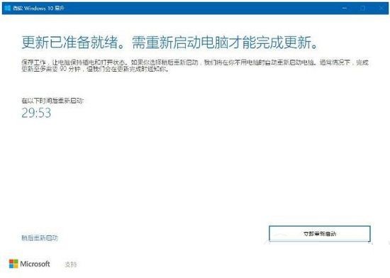 4、等待Windows10易升更新准备就绪后,最后点击“立即重新启动” 即可进行更新。