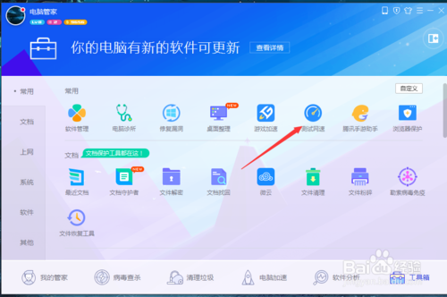 1、首先,当Win10易升正在准备下载更新包时,打开腾讯电脑管家,在工具箱中找到测试网速