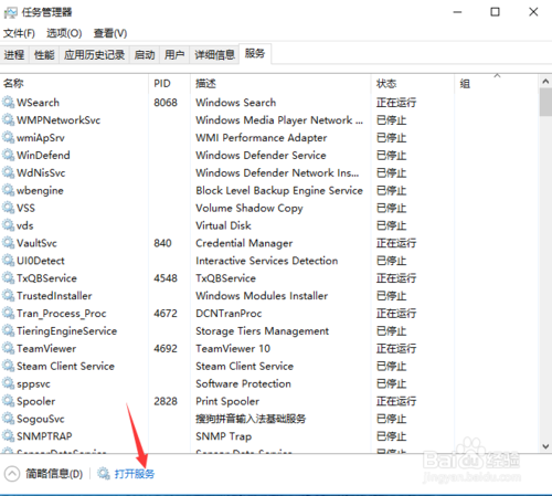 3、这个方法可以直接从根源断掉win10易升的下载,禁用网络后,win10易升会提示你下载失败,但是,电脑默认的更新也要禁用,打开任务管理器,点击服务,下面有一个打开服务,点击进去