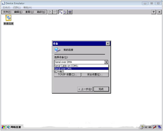 在模拟器中,选择【启动】【设置】【网络和拨号连接】,在弹出的界面中,双击【新建连接】,弹出如下界面: