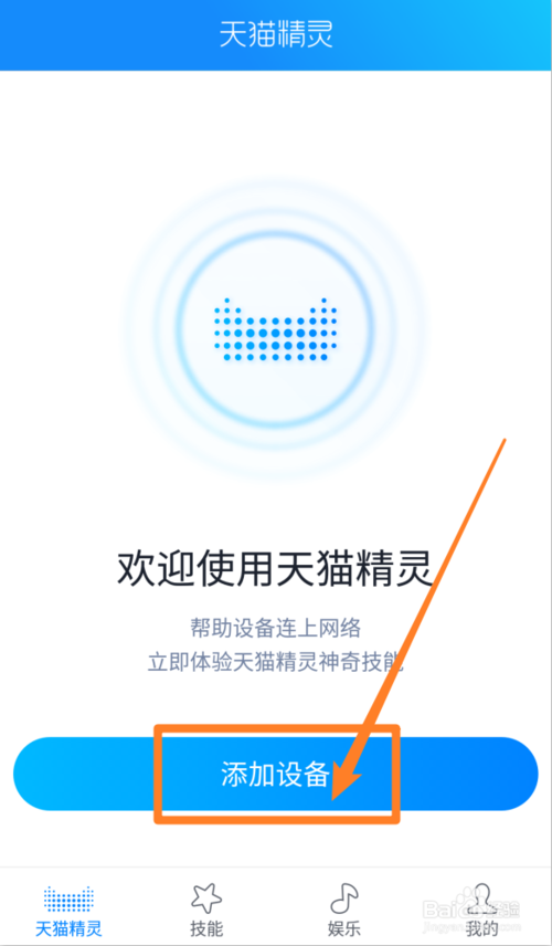 打开天猫精灵APP后,点击天猫精灵—【添加设备】