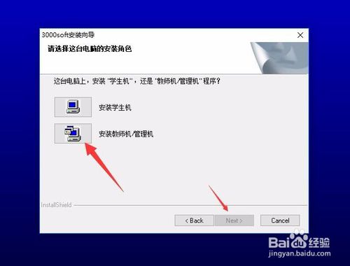 进入安装界面,点击Next按钮,进入到下一步,点击安装教师机/管理机,再点Next进入下一步。