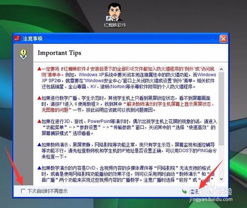 电脑重启进入后,就可以双击图标,弹出注意事项,勾选下次启动时不再显示,点击继续。