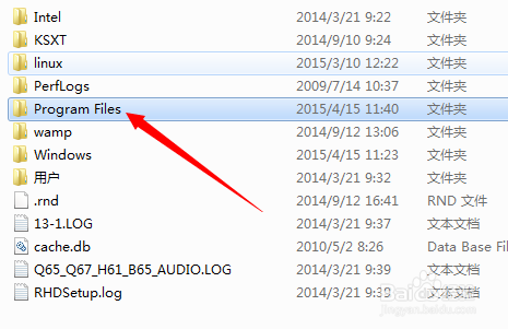 打开之后会出现几个文件夹,这是系统文件的,打开其中名称为“Program Files"的文件夹。