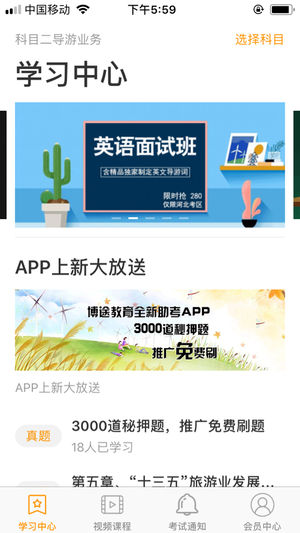 2、精品网络课程,包含政策与法律法规、导游业务、全国导游基础知识、地方导游基础知识和导游业务能力,五个科目的考纲视频学习;