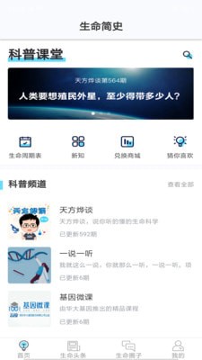 生命简史app这是一款传递生命科学知识的平台; 生命简史app整款应用界面相当的简洁并且没有任何的广告,支持听书模式,传递给你生命科学知识的阅读平台。生命简史app给你科普让你知道最前沿的资讯,基因微课教你学习基因的那点事,给你想要的生命科学知识平台,更新的速度还不错。