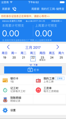 1、每周发工资:每周可预支上周工资,生活有保障,每周有钱花2、实时提现:随时随地提现,快捷到账