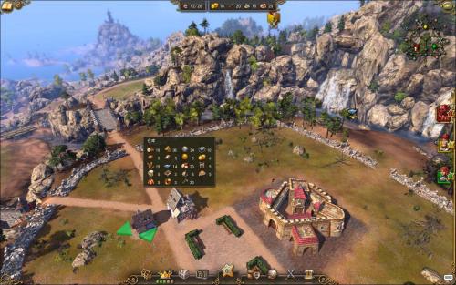 在城镇建设方面,本章开启的技能并不多。游戏中,只有研究了学院中相应的科技才能发展相应的建筑,而此关卡中研究了齿轮原理(Gearwheels)就能升级许多建筑,比如农场和矿场升级到更高级别,以满足更多的居民需求,加快工人工作效率。其中特别重要的是可以建设了望塔,并升级为炮塔,如果在村庄前的狭窄道路上来上一座炮塔,只需配合少量剑士,就能完美抵挡敌人的进攻,而炮塔的重要作用也会在以后数章中得到淋漓尽至的体现。此外研究了文学(literacy)能升级城镇中心,有调整税收及建设仓库和教堂等功能。在本关中还可以建设仓库(Store house)和石匠铺(Storemason’s hut)等新的经济建筑,不过它们的具体效能只能到以后体现了。
