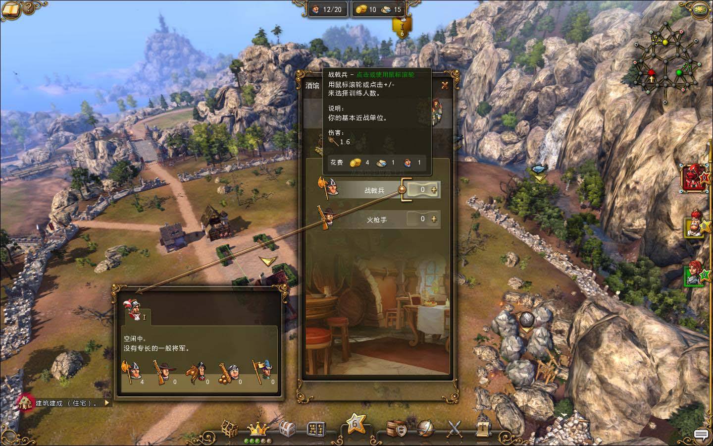 3.建设己方营地,并升级各种建筑。此关比较轻松,大部分时间都用在转化敌人和跑路上了。圣骑+游侠+神父的组合无坚不摧,首次登场的神父第一技能说服很有用,可以群体转化敌人,还有祝福技能可以在战斗中祈祷很好的辅助作用,本关可以升级更多的建筑,初期木头和石头比较重要,你也可以不用转化敌人,给自己造的兵种升级,并攻击
