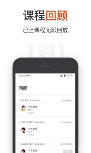 1.课表日历:待上课程随时查看;2.课程回顾:已上课程无限回放;