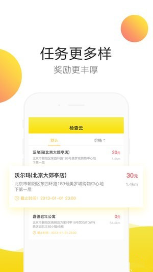我要赚钱:检查云app会员可以根据自己的时间地点,随时随地参与线下渠道任务,并获得相应的奖励。
