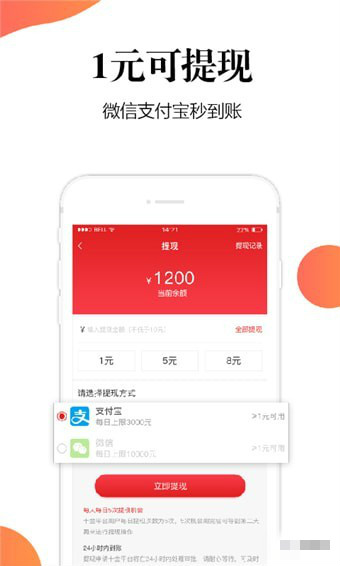 分享明细、邀请明细、收入提现明细,让每个使用者明明白白赚钱,1元即可提现秒到账,收入有保障